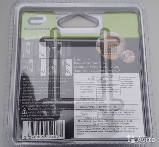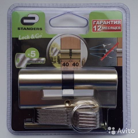 Цилиндр замка Standers 80, 40x40мм, ключ-ключ, 5 ключей, золото, в упаковке. Покупался в Леруа-Мерлен. Не использовался. BuyReklama.ru